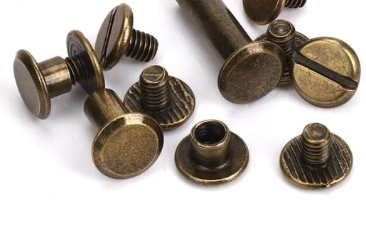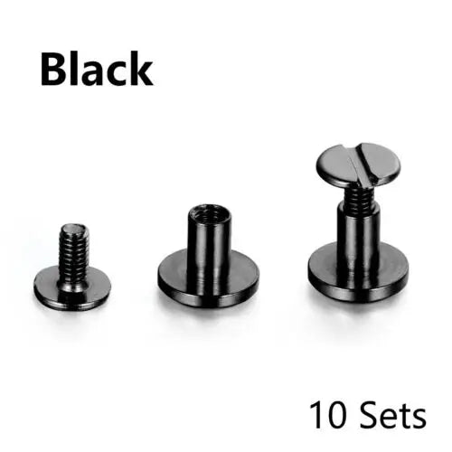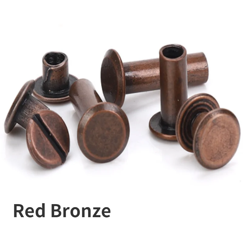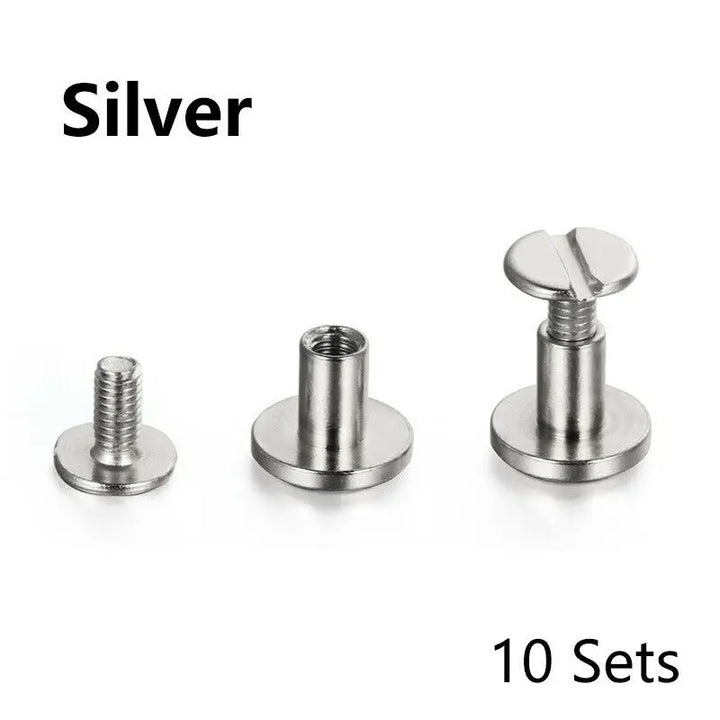 10Sets/20Pcs Luggage Leather Metal Craft Flat Belt Screws Nail Rivets Brass Gold Silver Solid Female Rivet Slotted Stud Head