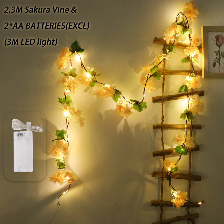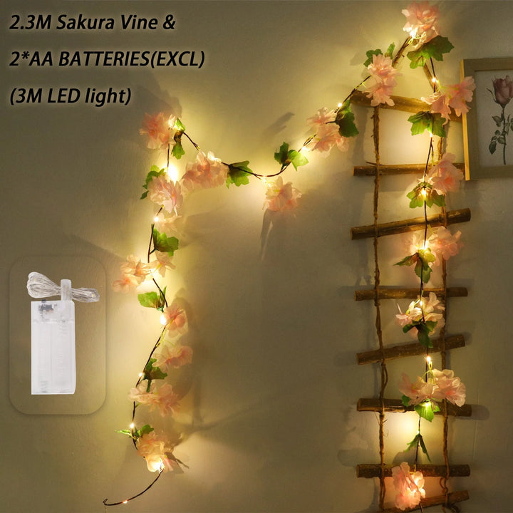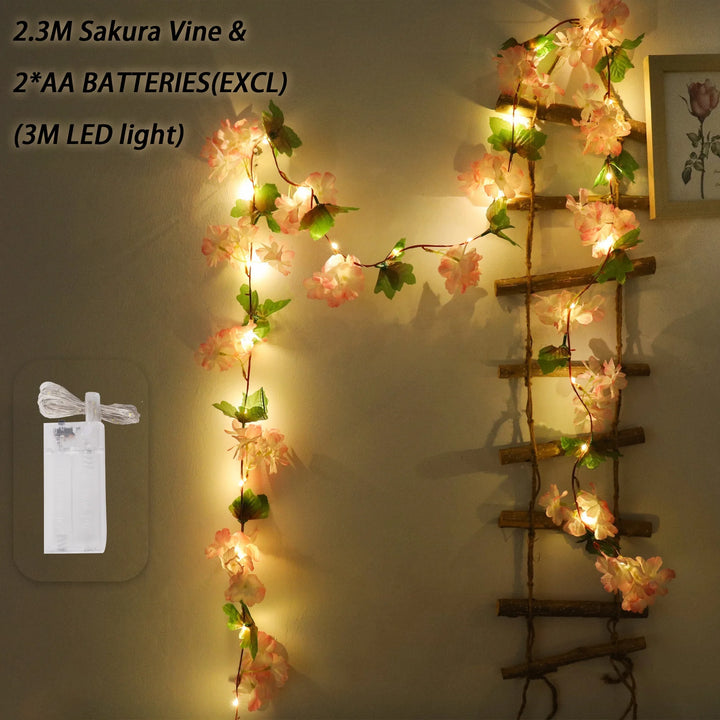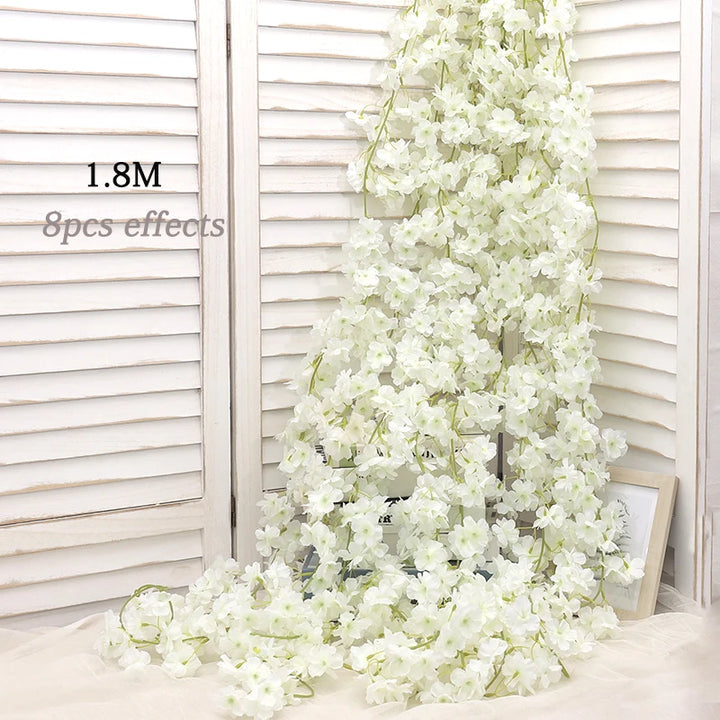 180CM Artificial Sakura Flowers Vine Wedding Garden Rose Arch Home Party Decoration Christmas Bridal Fake Silk Scrapbook Plants