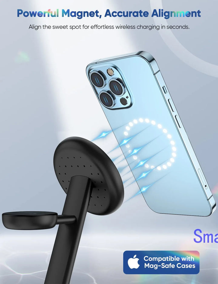 Our 3-in-1 Wireless Charger Stand is the perfect addition to your tech arsenal. It's time to embrace the future of wireless charging and simplify your life.