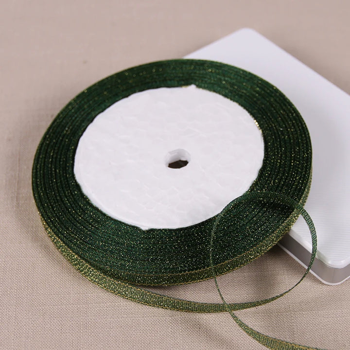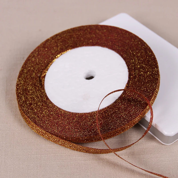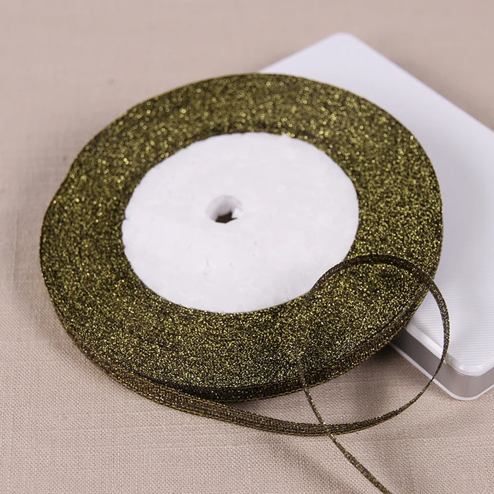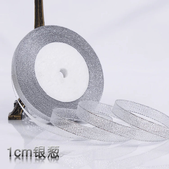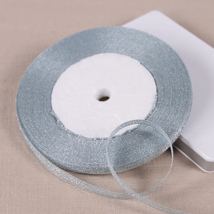 25Yards 6mm Silver Gold Glitter Silk Satin Ribbon
