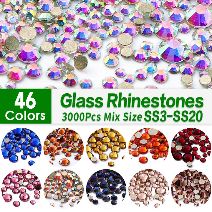 3000Pcs Mix Size SS4-SS20 Clear Crystal Rhinestones
