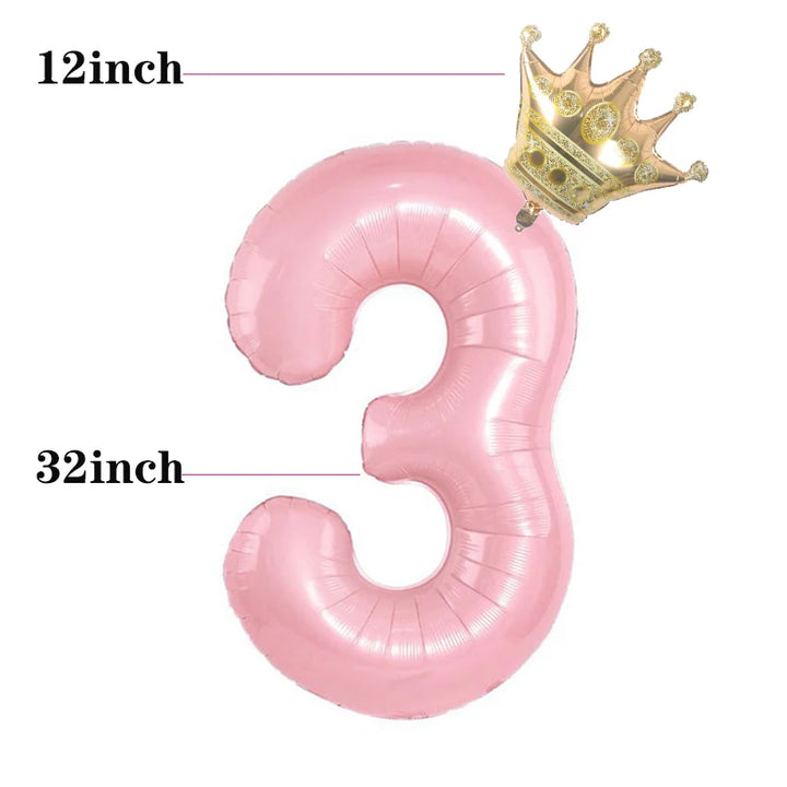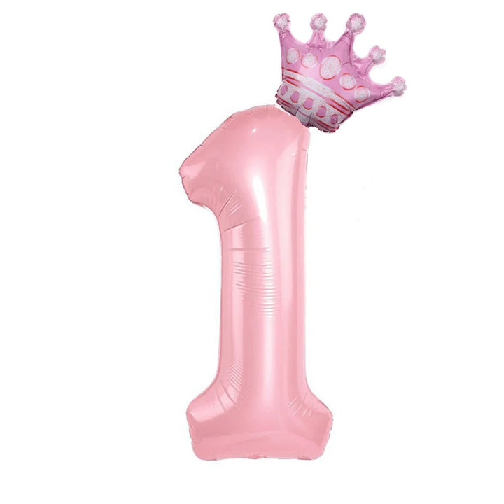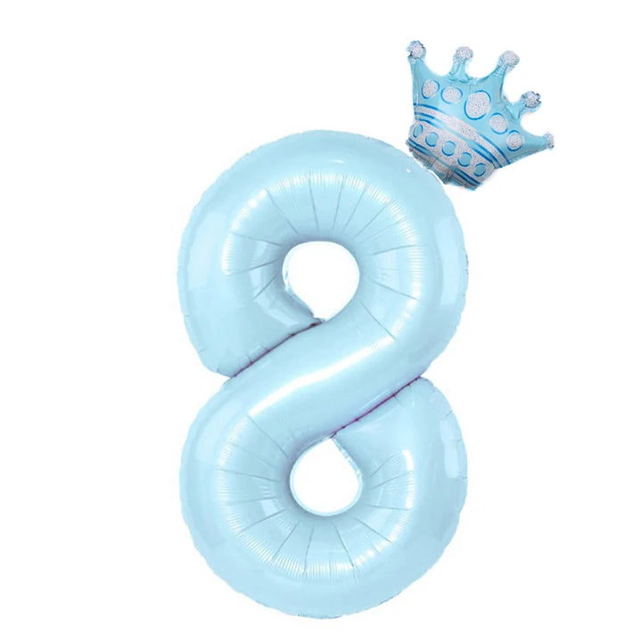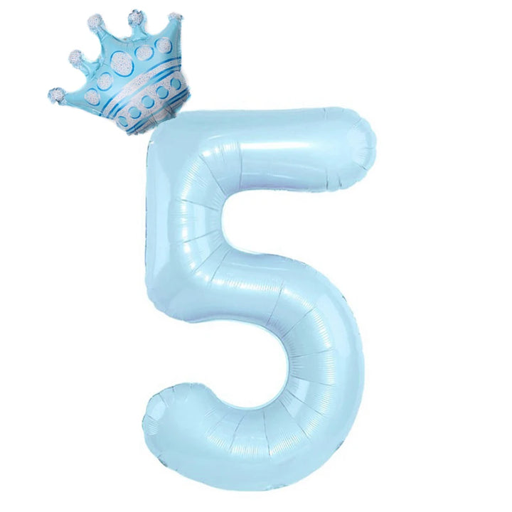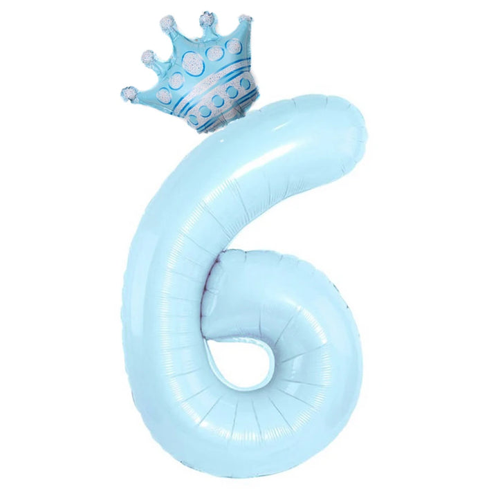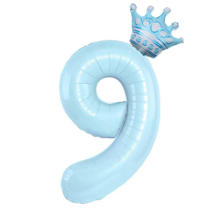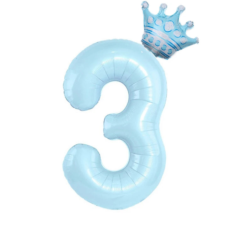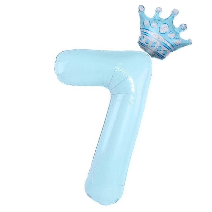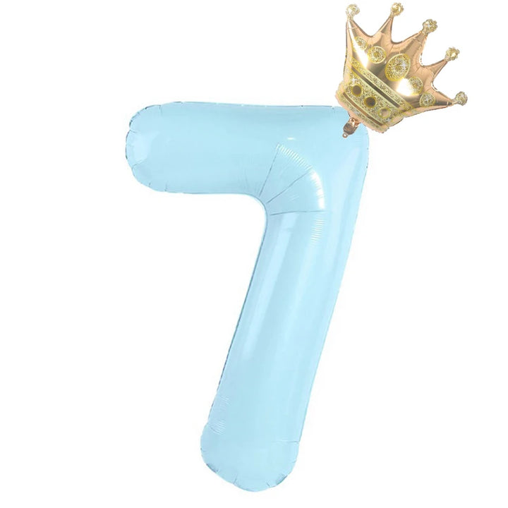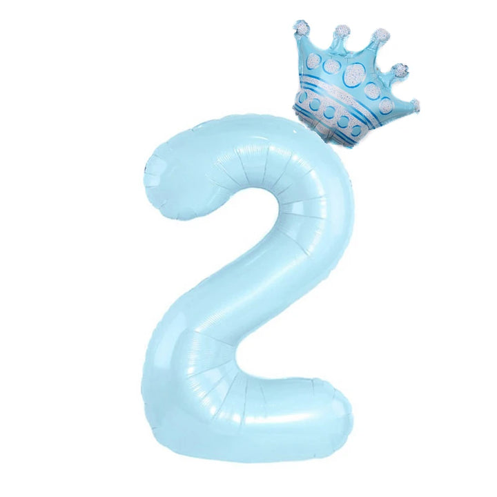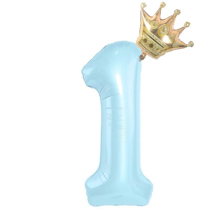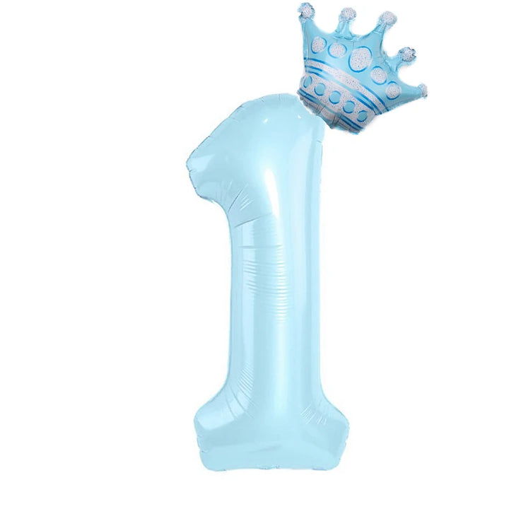 32inch Pastel Baby Blue Pink Foil Number Balloon With Crown 1 2 3 4 5 6 7 Birthday Party Baby Shower Wedding Decoration