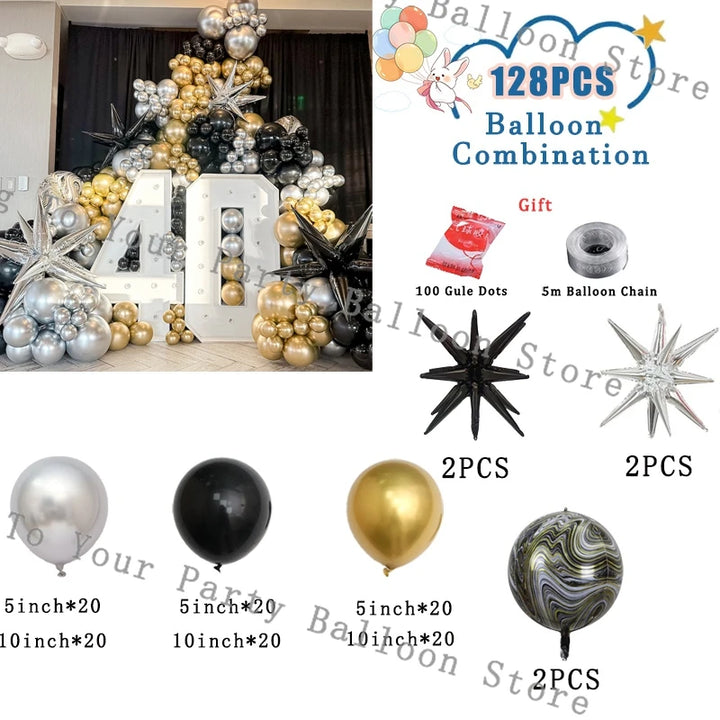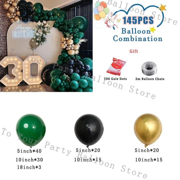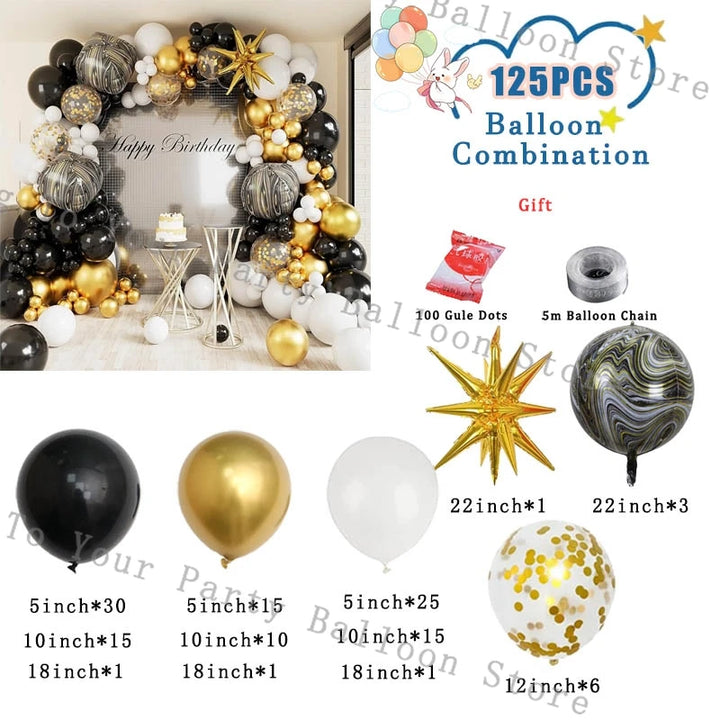 Black and Gold Balloons Garland Arch Kit With Gold Confetti Balloons