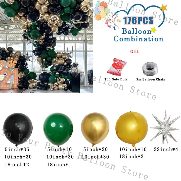Dark Green Balloon Garland Arch Kit Wedding Birthday Party Decor Black Golden Latex Balloon Anniversary Graduation Prom Decor