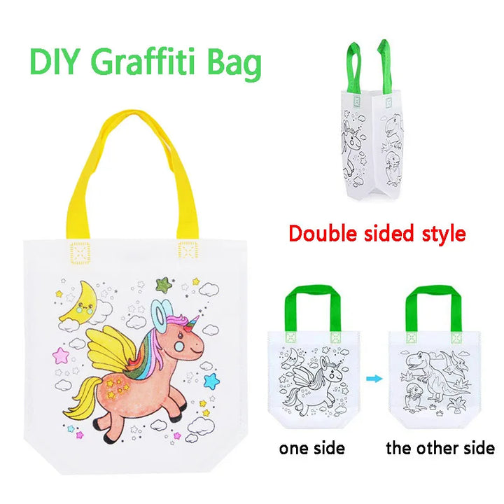 Our Double-Sided Graffiti Bag is the perfect canvas for your child's imagination. This reusable and eco-friendly bag is made from durable non-woven fabric, making it ideal for endless hours of creative fun.