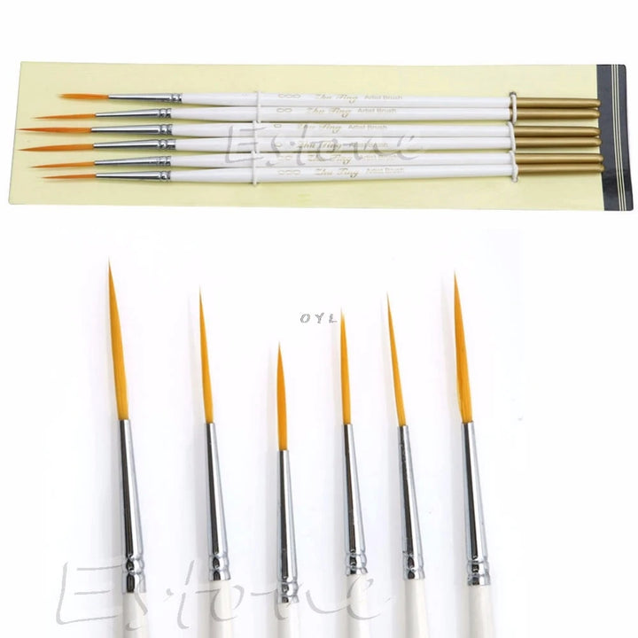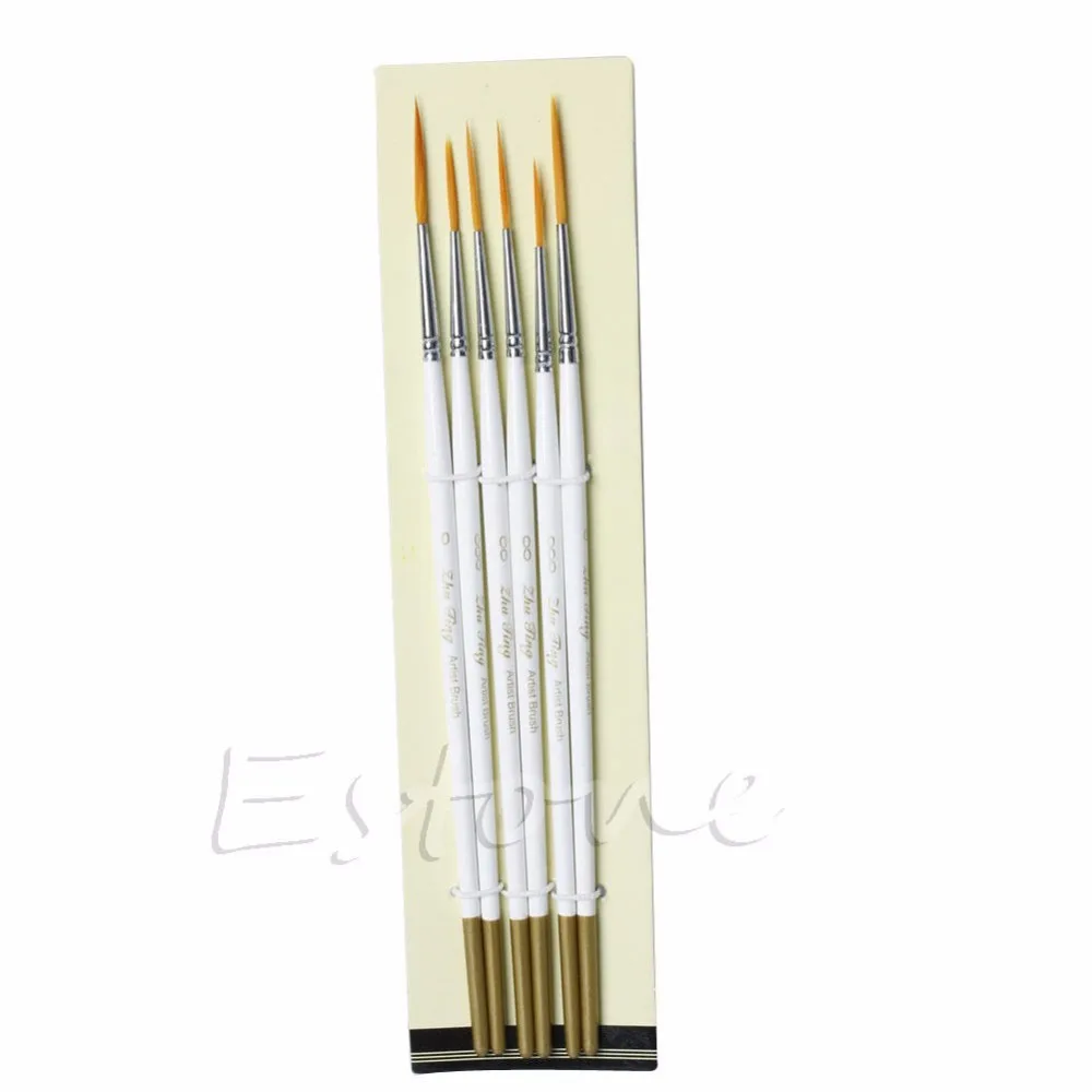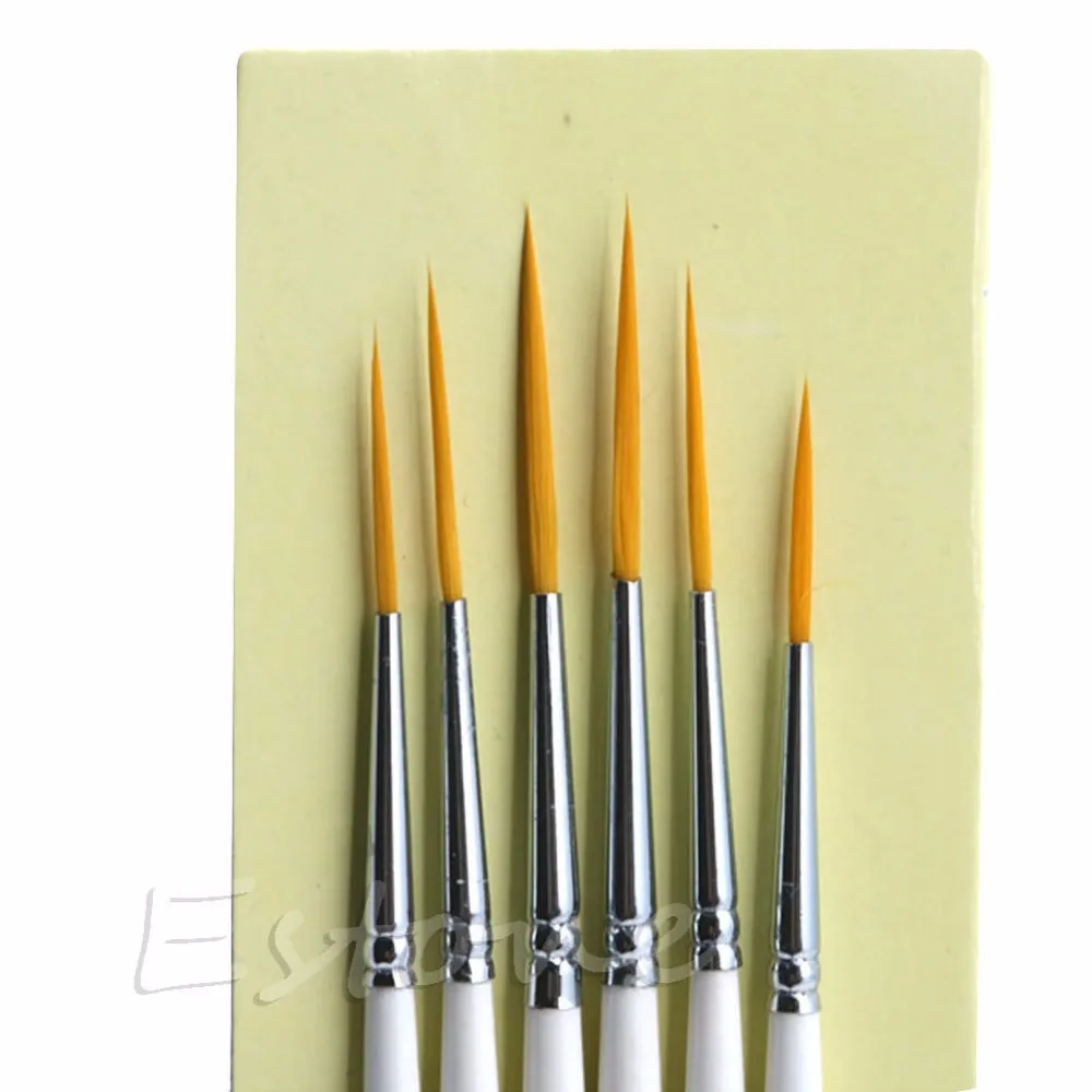 Hot 6Pcs/Set Nylon Hair Round Paint Brush