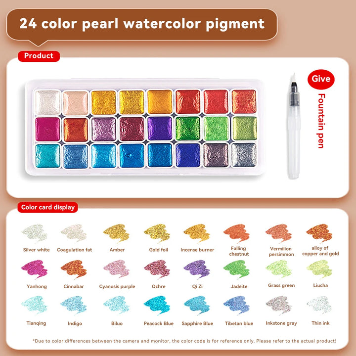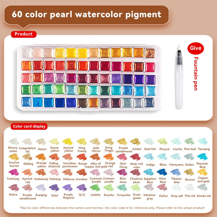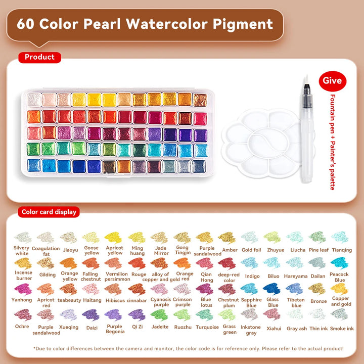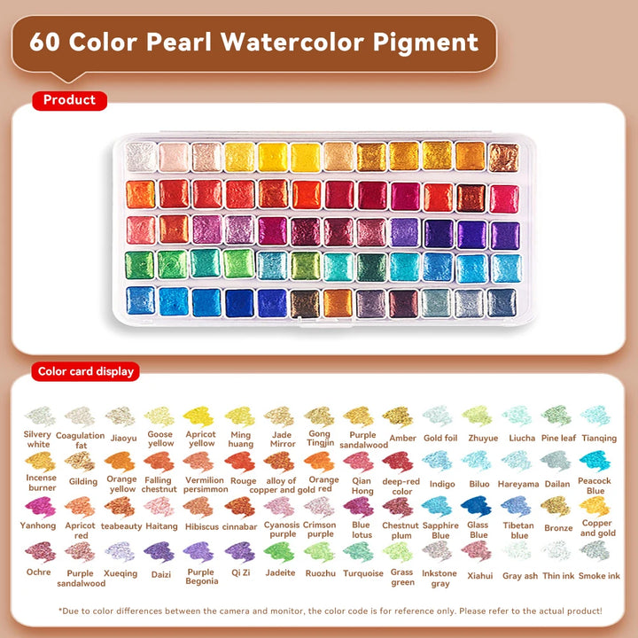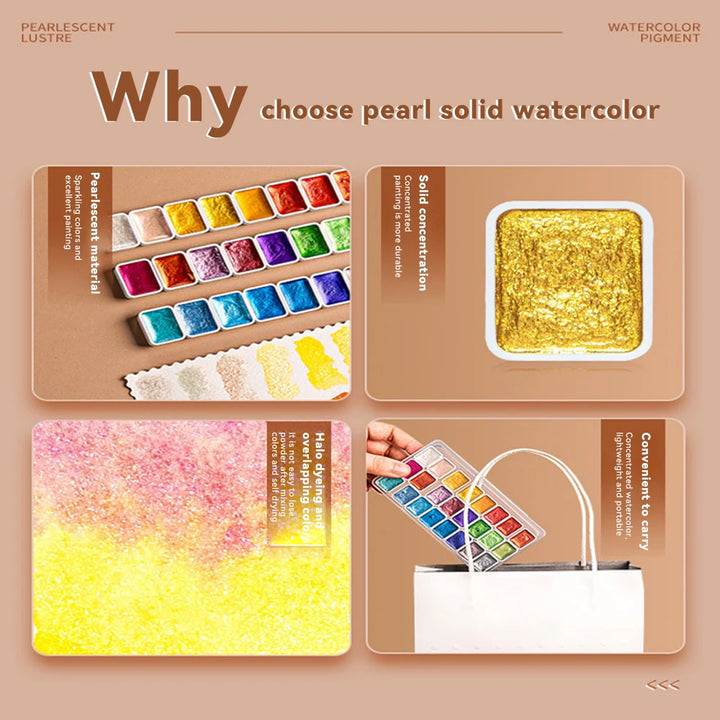 Pearlescent Solid Watercolor Paint Set 12/20/24/60 Color