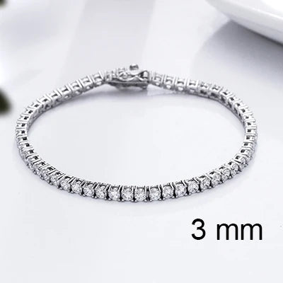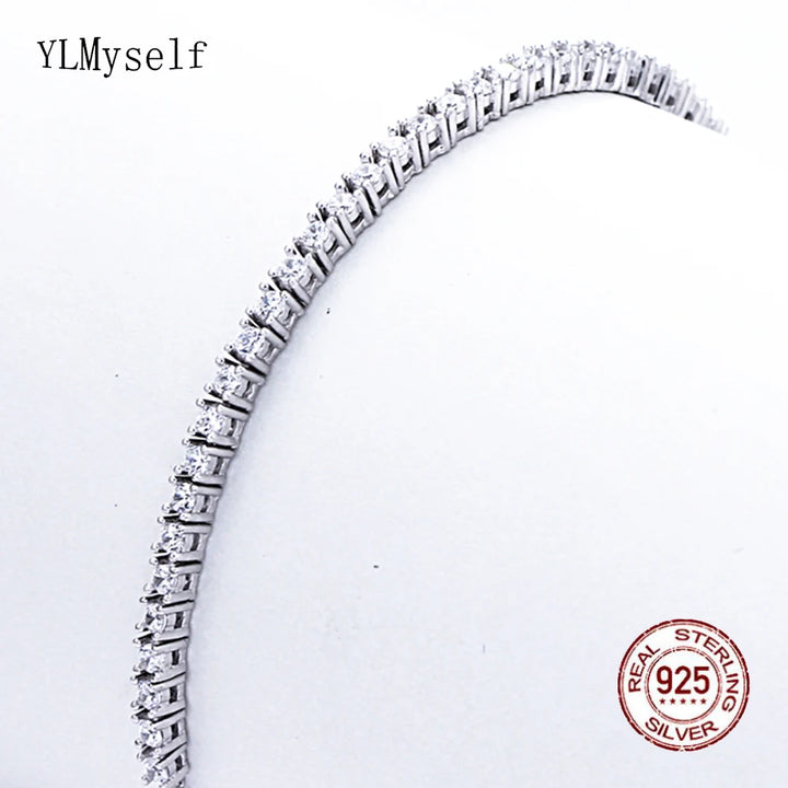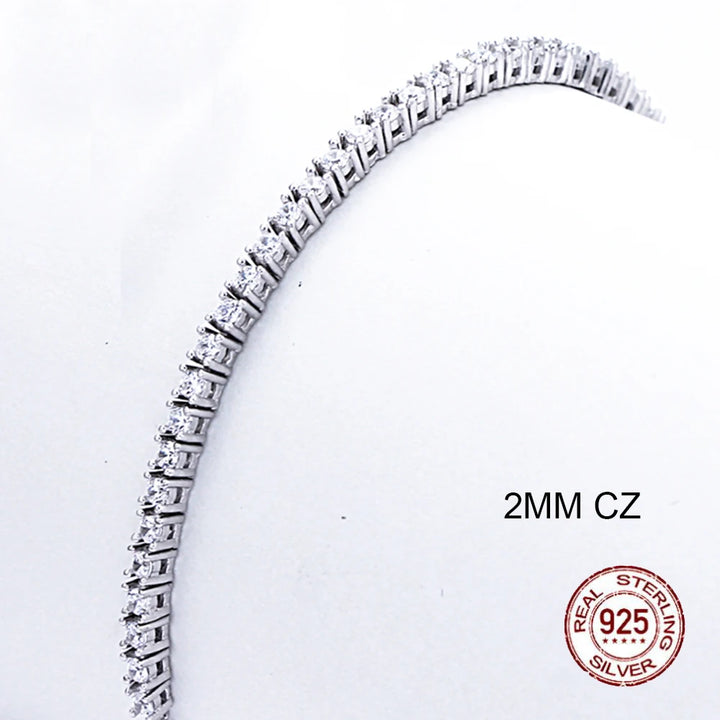 Pure Silver Tennis Bracelet Jewelry 16-20.5CM