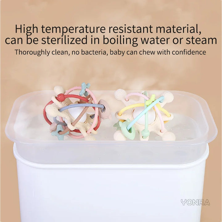 BPA free Food Grade TPU & Safe to Chew:The YONRA Ball are made of food grade teethable TPU & ABS, BPA free and non-toxic, which are very safe for baby to chew. Its fashion colors capture baby’s attention to play, which enlighten baby’s visual development & aesthetic sense. The baby toy is designed as baby teething toys for babies 0-36 months, good choice as baby boy girl shower gifts.
