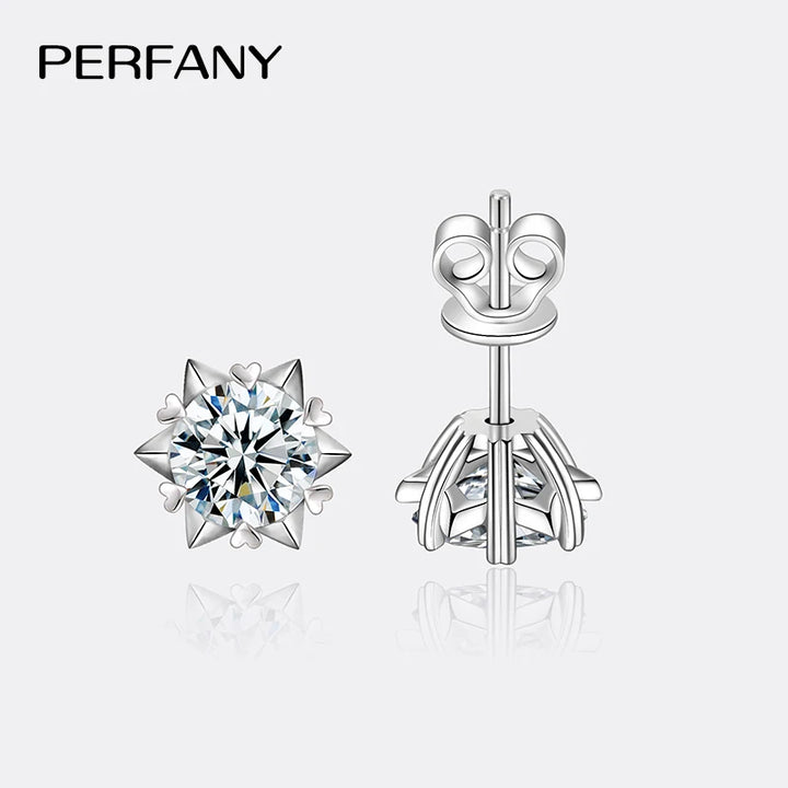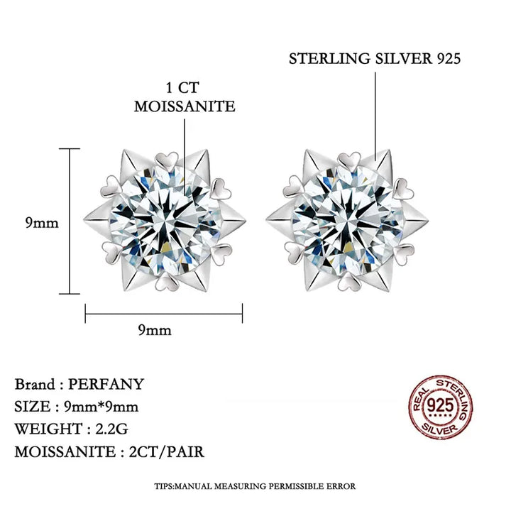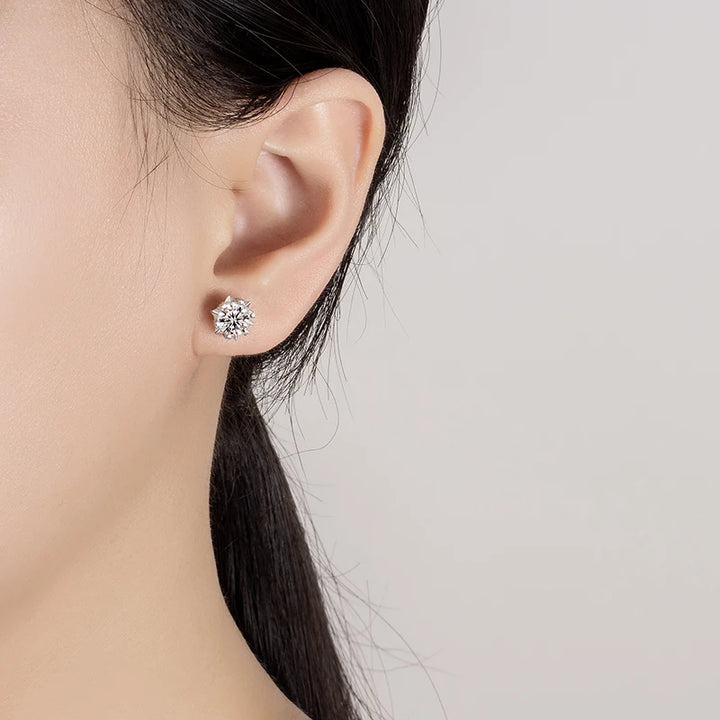 S925 Pure Silver Six Claw Snowflake Laboratory Diamond Earrings 0.3-2CT