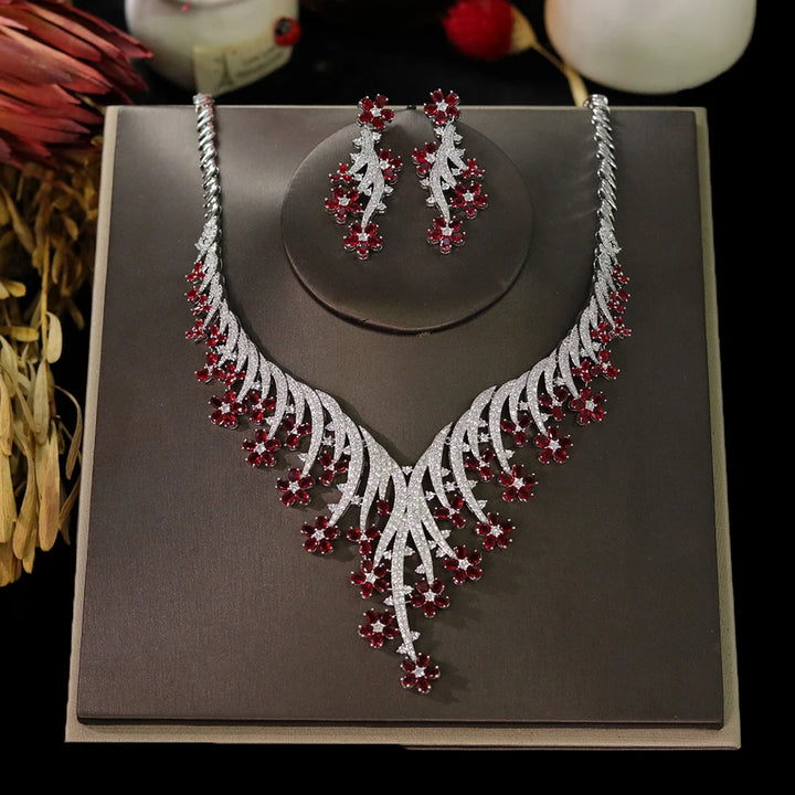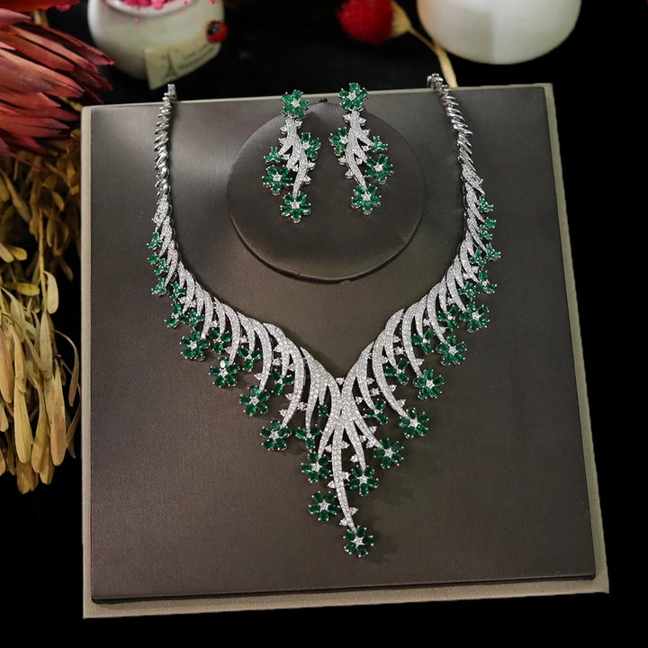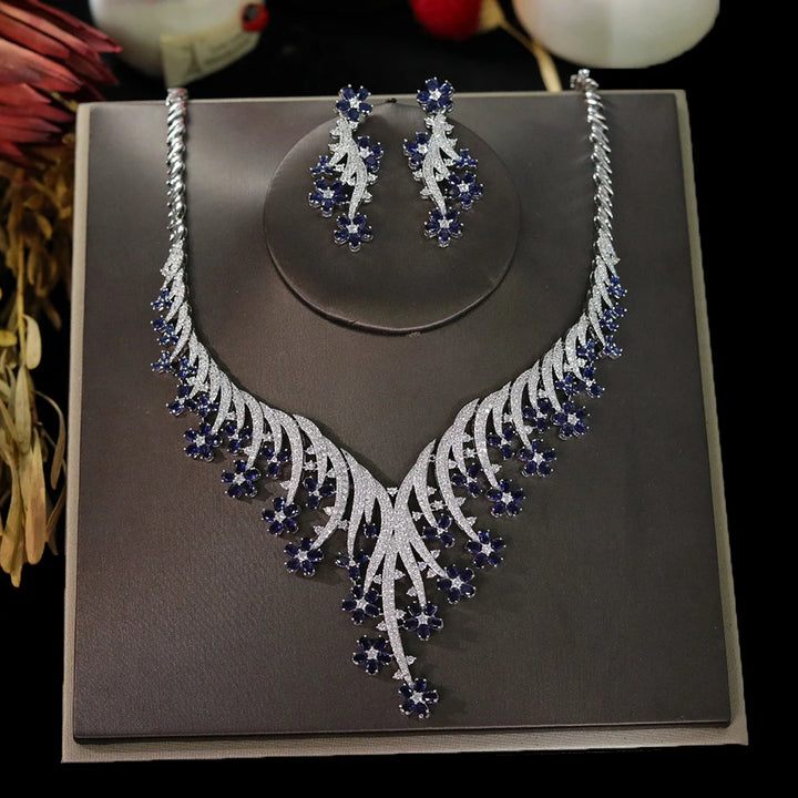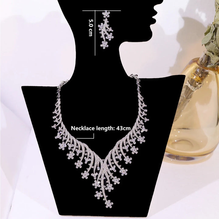 Zirconia Flowers Vine Necklace Earrings Two-piece Set